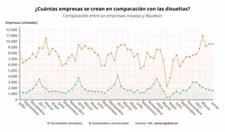 En tasa mensual (junio sobre mayo), la constitución de empresas bajó un 0,2%, mientras que las disoluciones empresariales disminuyeron un 8,7%.