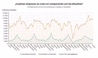 Con el avance interanual de junio, la creación de empresas encadena cinco meses consecutivos de tasas positivas después de haber aumentado un 3,1% en febrero, un 61,8% en marzo, casi un 300% en abril y un 152,4% en mayo.