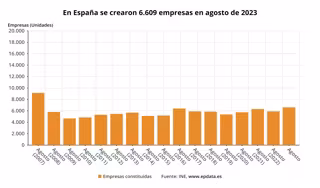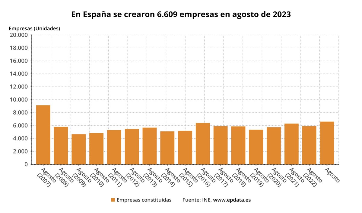Con el repunte de agosto, más de 3,5 puntos inferior al registrado en julio, la creación de empresas encadena ocho meses consecutivos de ascensos interanuales.