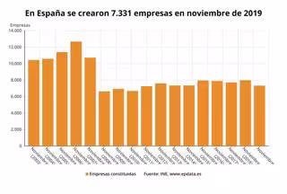 Con el retroceso de noviembre de 2019, la creación de empresas regresa a tasas interanuales negativas tras el aumento del 4% que registró en octubre.