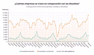 Evolución del número de empresas creadas y disueltas en España - EPDATA