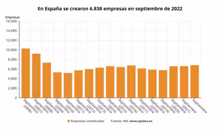El número de nuevas sociedades mercantiles aumentó un 3,3% en septiembre respecto al mismo mes de 2021, hasta sumar un total de 6.838 empresas, según los datos difundidos este jueves por el Instituto Nacional de Estadística (INE).