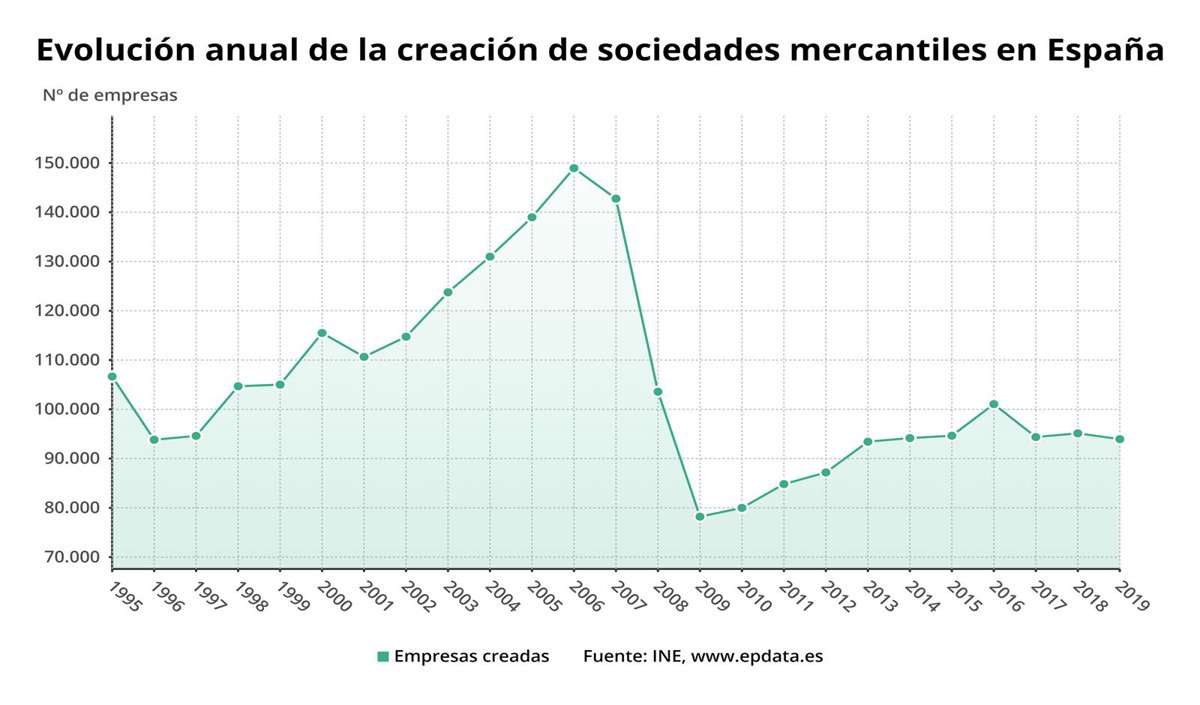 El número de nuevas sociedades mercantiles descendió un 1,2% en 2019 respecto al año anterior, hasta sumar 93.943 sociedades, según los datos difundidos este jueves por el Instituto Nacional de Estadística (INE).