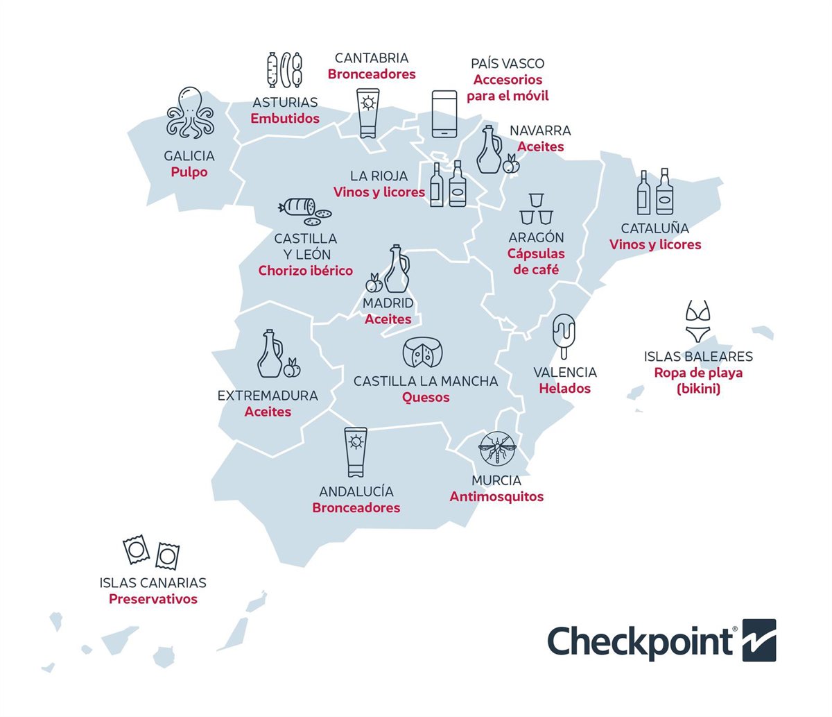 Mapa con los productos más hurtados en verano en los comercios - CHECKPOINT SYSTEMS