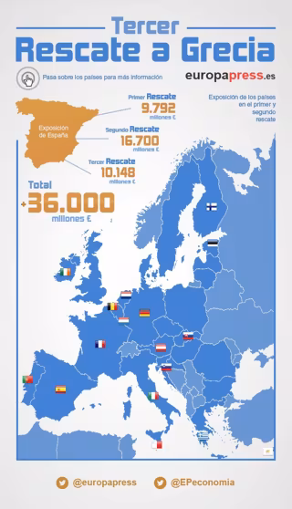 De esta forma, España sumaría ya, aproximadamente, una exposición de unos 36.000 millones de euros en estos cinco años a la recuperación de la economía de Grecia.