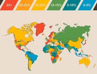 La web Movehub ha realizado, gracias a su herramienta comparativa de salarios e impuestos medios, una infografía en la que se compara la carga impositiva sobre un salario medio a nivel mundial.