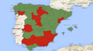 En este mapa se puede ver en qué provincias ha subido el paro (en color rojo) y cuáles ha bajado (en color verde). Pinchando encima de cada región se puede ver la tasa de paro y cuánto ha subido o ha bajado respecto al trimestre anterior.