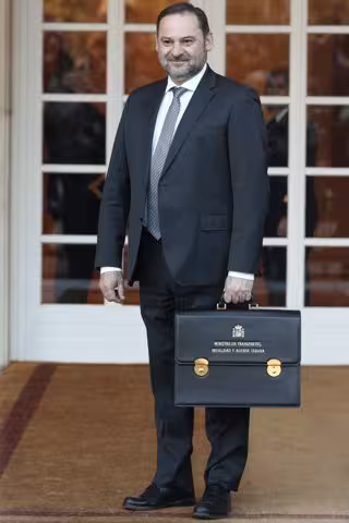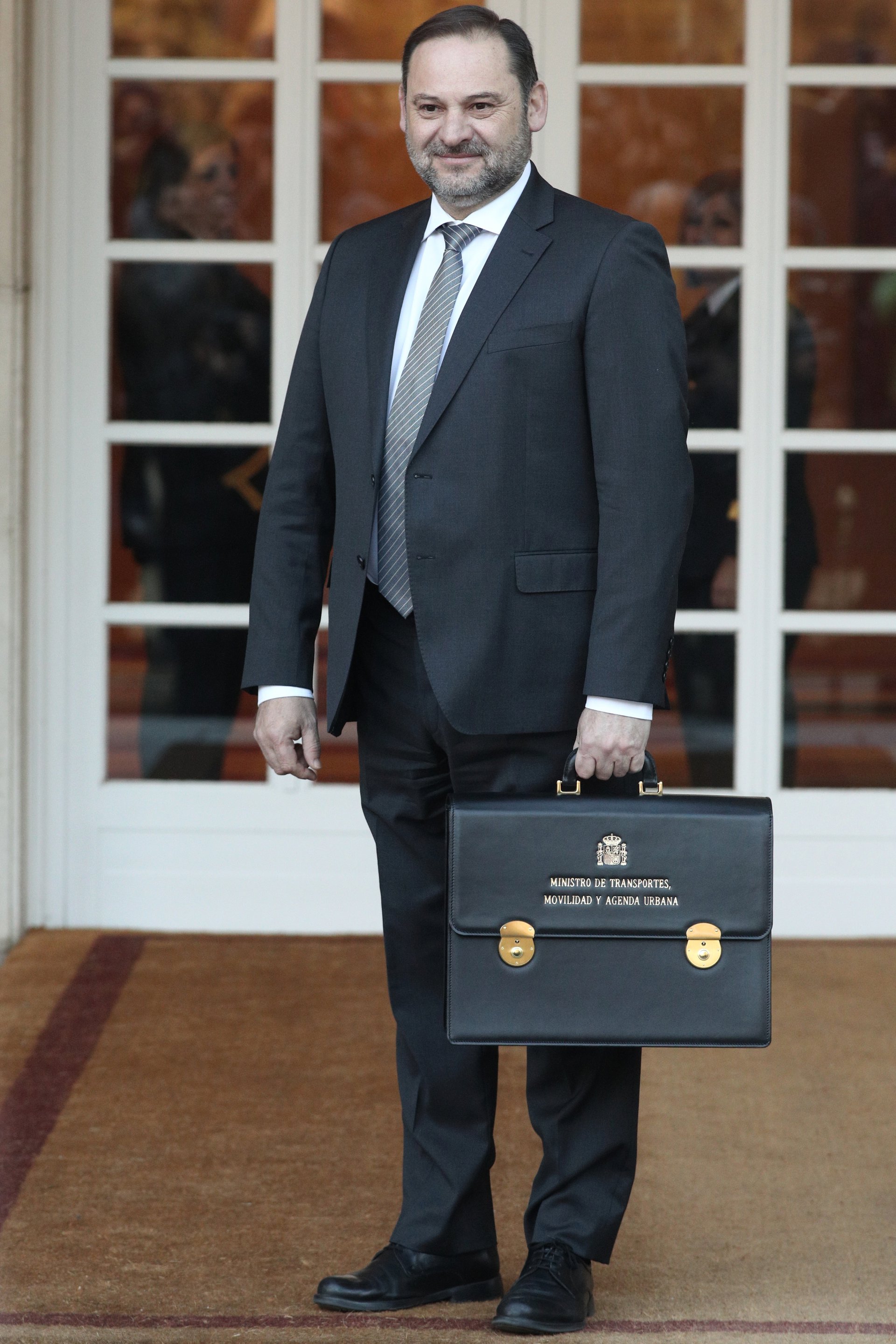 El ministro de Transportes, Movilidad y Agenda Urbana, José Luis Ábalos, posa con la cartera de su ministerio, a su llegada a La Moncloa para la reunión del consejo de ministros del Gobierno de coalición , en Madrid (España), a 14 de enero de 2020. - Eduardo Parra - Europa Press