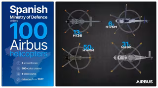 También se han encargado 50 helicópteros H145M, todos para el Ejército de Tierra, para la formación de pilotos militares, el ataque ligero, apoyo logístico y respuesta ante emergencias.