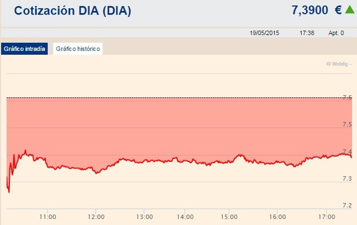 Los títulos de la cadena de supermercados, que habían sido suspendidos de cotización por la CNMV a la apertura volvían a cotizar pasadas las 10.00 horas a un precio de 7,28 euros, con un descenso de casi el 4% para cerrar finalmente a un precio de 7,39 euros, es decir por debajo de los 7,40 euros a los que se ha materializado la operación.