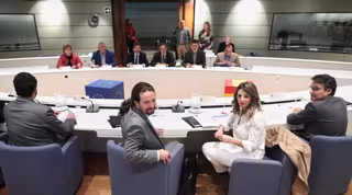 La ministra de Trabajo y Economía Social, Yolanda Díaz ( 2d) y el vicepresidente del Gobierno de Derechos Sociales y Agenda 2030, Pablo Iglesias (2i), durante la reunión con los representantes de las Organizaciones Profesionales Agrarias (OPAS) - Eduardo Parra - Europa Press