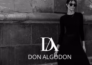 Este relanzamiento de la icónica marca de moda se refleja en la nueva identidad visual de Don Algodón, donde el logotipo, con líneas limpias y modernas, y la paleta bicromática, cuidadosamente seleccionada, capturan la esencia, subrayando su estilo atemporal y sofisticado.
