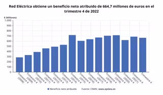 Redeia (antes Red Eléctrica) obtuvo un beneficio neto de 664,7 millones de euros en 2022, lo que supone un 2,3% menos que en 2021, principalmente por la regularización de ingresos y mayores gastos en la actividad de gestión y operación de infraestructuras eléctricas en España, según ha informado este martes.