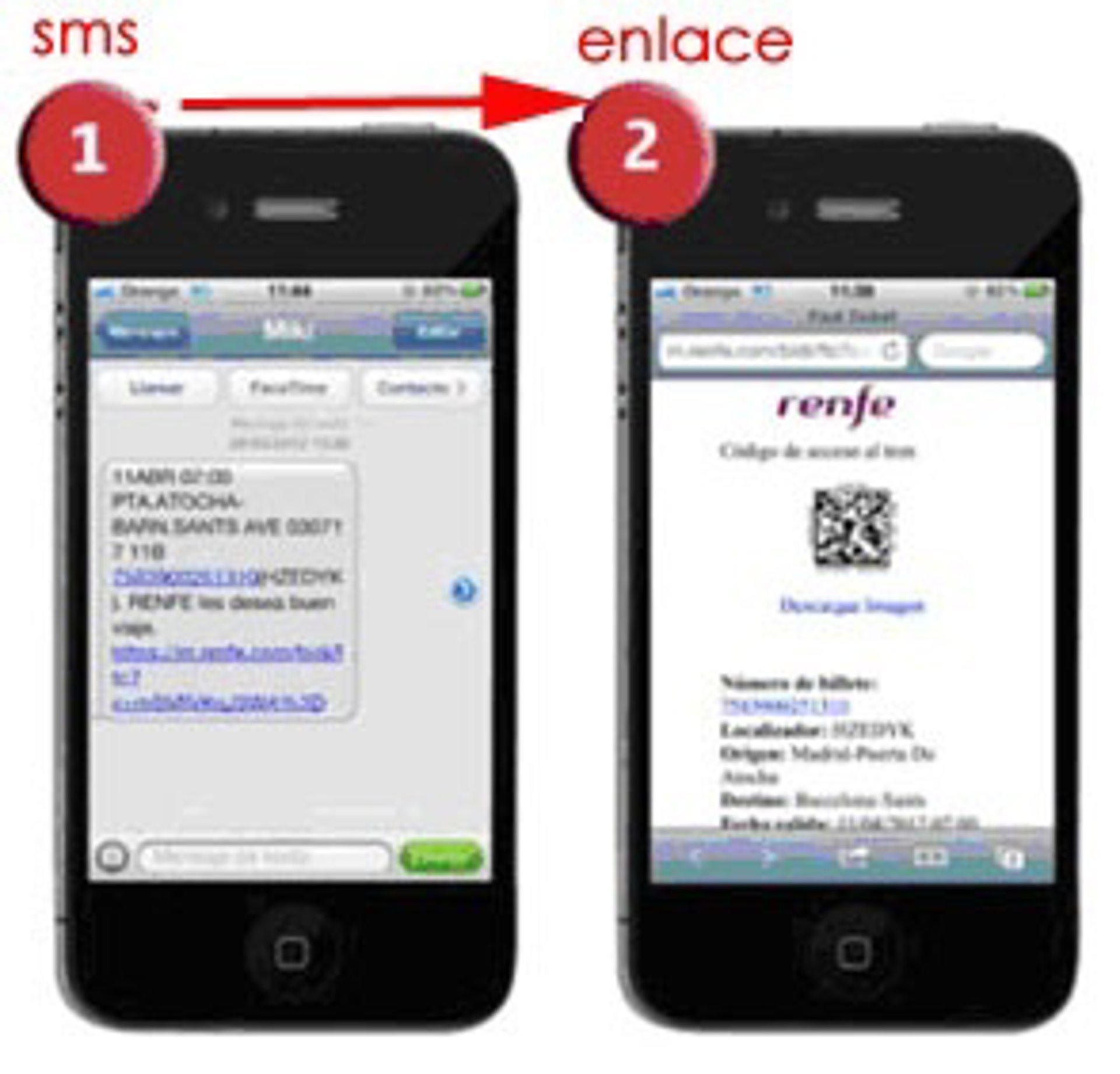 Una vez culmine esta compra, el usuario recibirá en su teléfono un SMS informativo con los datos del viaje (fecha, hora, origen y destino, número de tren, número de plaza, número de billete y su localizador) y un enlace de acceso para visualizar la imagen del billete por Internet.
