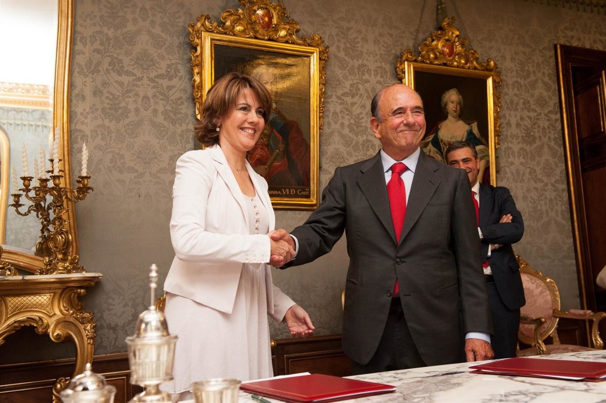 La presidenta del Gobierno de Navarra, Yolanda Barcina, y el presidente de Banco Santander, Emilio Botín, han suscrito un convenio por 650 millones de financiación con el objetivo general de promover el desarrollo económico de la Comunidad foral que estará vigente hasta el 31 de diciembre de 2013.