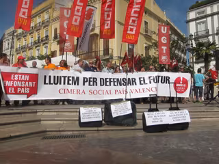 La concentración se ha iniciado a mediodía en la Plaza de la Virgen y ha contado con la presencia de los secretarios generales de los sindicatos UGT-PV y CCOO-PV, Conrado Hernández y Paco Molina, quienes han expresado el malestar de la sociedad ante unas cuentas que, para el representante de CCOO, "van a profundizar en la desigualdad y en la injusticia".
