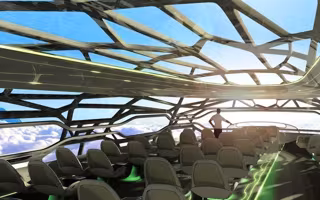 La estructura biónica del avión emula la eficiencia del esqueleto de un pájaro, optimizada para proporcionar la fuerza necesaria y permite una membrana inteligente que controla la temperatura del aire y se torna transparente para ofrecer al pasajero panorámicas abiertas.