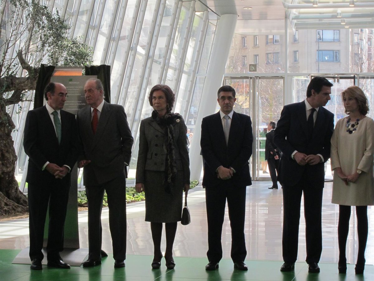 Los Reyes don Juan Carlos y doña Sofía han inaugurado la Torre Iberdrola que la compañía ha construido en Bilbao, en un acto en el que el presidente de la eléctrica, Ignacio Sánchez Galán, ha señalado que el edificio simboliza "el anclaje de la empresa a Euskadi", así como "el firme deseo de mantener los centros de decisión en España".
