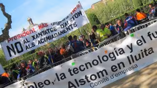 Algunos trabajadores se han concentrado por la mañana ante la planta, y luego se han desplazado en tren a Barcelona para manifestarse hasta el Parlamento catalán con pancartas como 'Por el empleo, la tecnología y el futuro', '¡President Mas di no! No al chantaje de Alstom, no a los despidos', y 'Ante el chantaje, ¡dignidad! Alstom en lucha'.