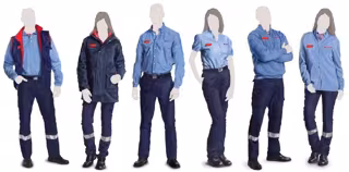El catálogo combina prendas de algodón de textura transpirable con otras de alto contenido de fibras de poliéster, que permiten más flexibilidad y adecuación a los movimientos, son más duraderas y resistentes al fuego y al calor, fáciles de lavar y secar sin arrugas y 100% reciclables.