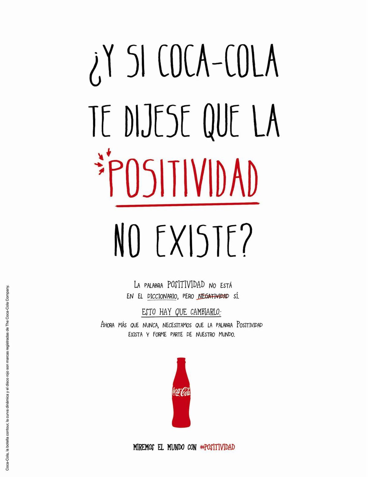 La iniciativa incluye, además de una campaña en las calles con postes luminosos, anuncios en los principales periódicos con la pregunta: "¿Y si Coca-Cola te dijese que la positividad no existe?" y una campaña en redes sociales para que los ciudadanos puedan adherirse a la petición usando la etiqueta '#positividad'.