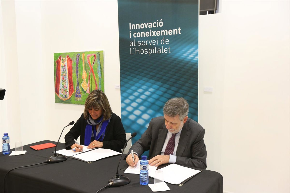 La alcaldesa de L'Hospitalet de Llobregat, Núria Marín, y el director de la delegación Catalunya Zona y Medio Ambiente de FCC, Pablo Martín Zamora, fueron los encargados de rubricar el acuerdo.