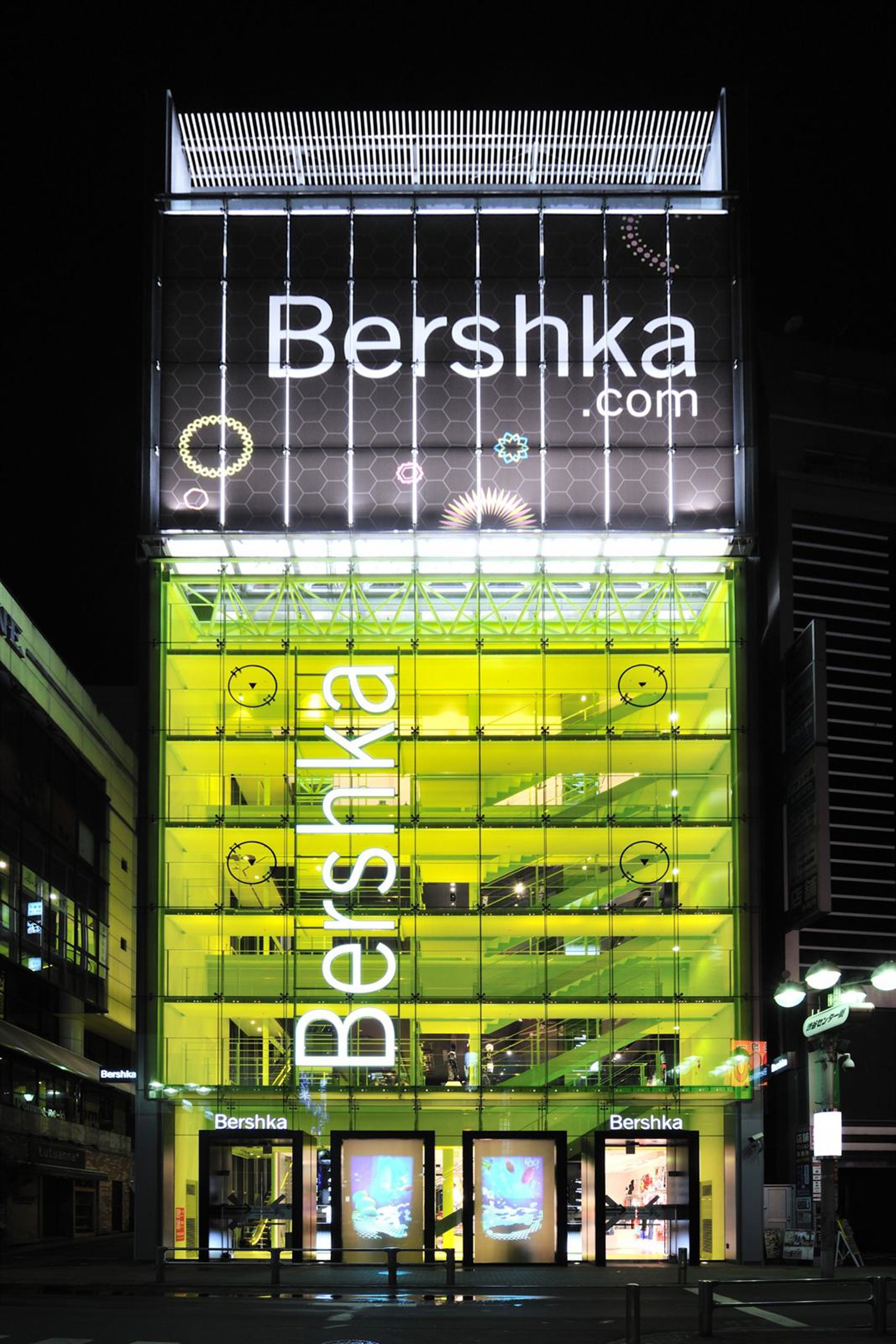 El nuevo establecimiento, que ocupa las cuatro plantas comerciales del edificio Zero Gate Building, tiene una "imponente" fachada de cristal delimitada por neones amarillo pop, una de las señales de identidad de Bershka, y permite percibir desde la calle el "espíritu colorido" y futurista de la cadena.