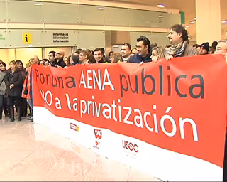 Miles de trabajadores de AENA han secundado este viernes las concentraciones convocadas por CC.OO, UGT y USO, en todos los aeropuertos de la red y en contra la privatización del 49% de Aeropuertos Españoles y Navegación Aérea (AENA).