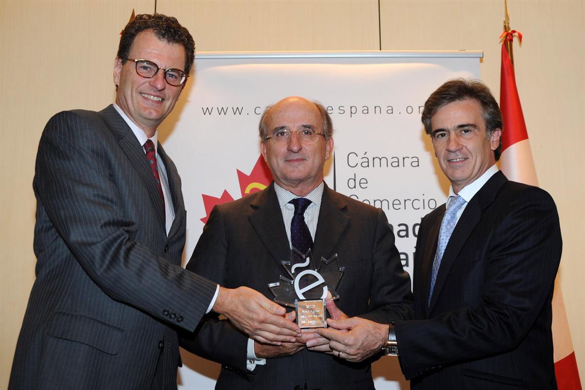 El presidente de Repsol, Antonio Brufau, recogió el galardón en un acto que contó con la presencia del embajador canadiense, Graham Shantz, el director general de Relaciones Económicas Internacionales y Asuntos Energéticos, José Eugenio Salarich y el presidente de la Cámara de Comercio Canadá-España, Alberto Echarri.