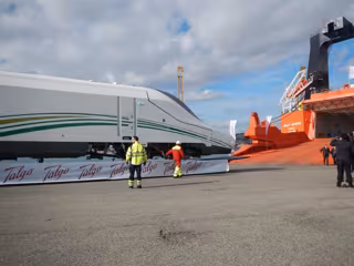 El fabricante ferroviario ha desplazado hasta el puerto barcelonés las cabezas tractoras del tren desde la fábrica que tiene en Madrid y los coches desde la planta de Rivabellosa (Álava), instalaciones donde han sido fabricados.