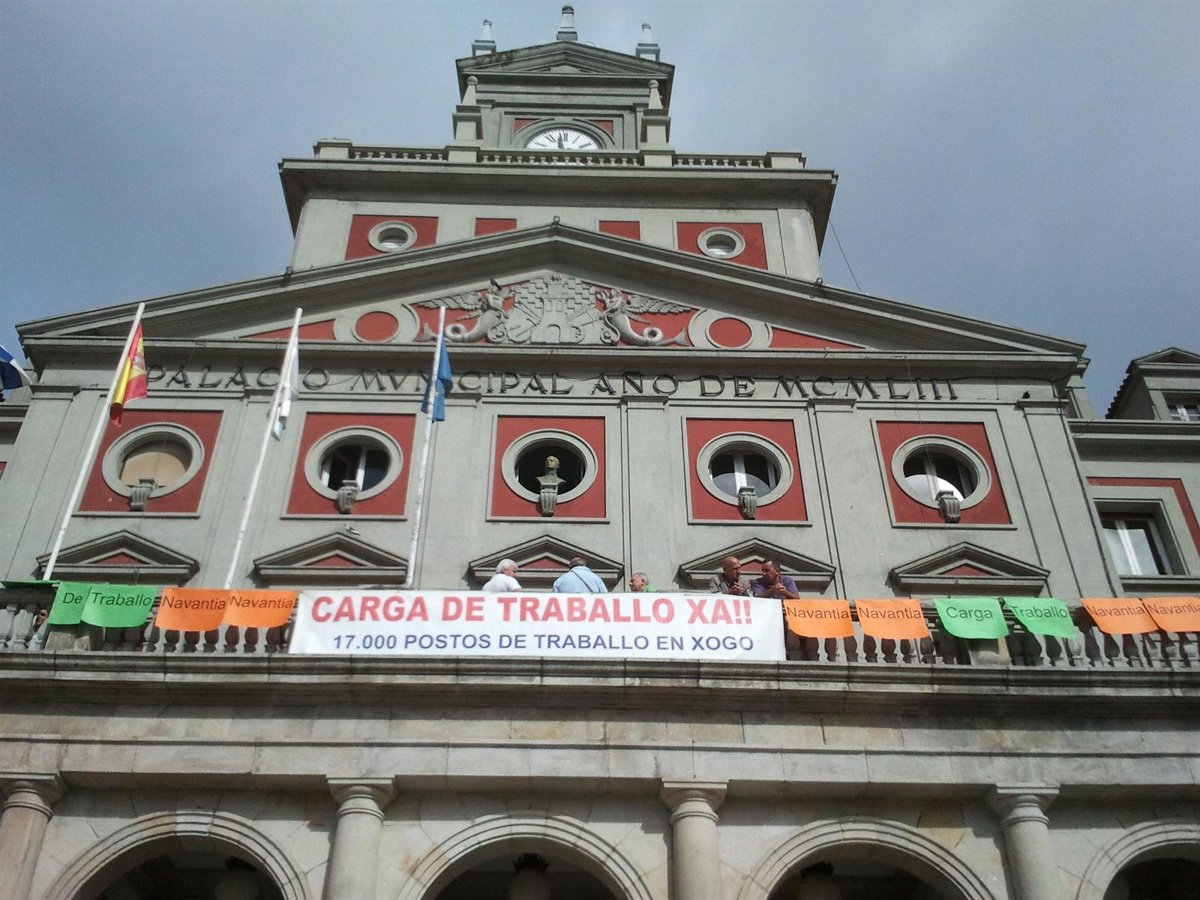 Los delegados sindicales de Navantia Ferrol y Fene mantienen por sexto día consecutivo su encierro en el Ayuntamiento ferrolano para reclamar la construcción del dique flotante y la obtención de carga de trabajo, pero han anunciado que intensificarán las movilizaciones con acciones de protesta en las que participará el conjunto de los trabajadores, mientras ven interés en "desinflar" sus movilizaciones.