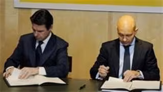 El ministro de Industria, Energía y Turismo, José Manuel Soria, acompañado del secretario de Estado de Comercio, Jaime García-Legaz, han firmado este martes un acuerdo para activar el Plan de Internacionalización de la industria con alto contenido tecnológico a fin de contribuir a "sacar todo el potencial" de este sector al exterior, y que contará con un presupuesto de 6 millones de euros.