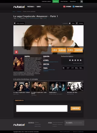 En el apartado cinematográfico se incluyen títulos de estreno que en su mayor parte llegarán a Nubeox el mismo día de su salida al mercado en DVD y Bluray. Así, los usuarios de la nueva plataforma podrán disfrutar de los mayores éxitos nacionales e internacionales entre 3 y 4 meses después de su estreno en salas, y contarán también con un amplio catálogo de librería.
