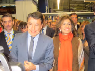 Ambos dirigentes han llegado al nuevo establecimiento encontrándose con la protesta de unos 40 trabajadores de Telemadrid. Los dos 'populares', ya dentro de las instalaciones, se han interesado por algunos productos, como los vinos con denominación de origen de Madrid o la carne de kobe.