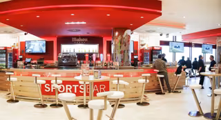 En ambos espacios, los viajeros y turistas tendrán la oportunidad de seguir cualquier competición deportiva en un espacio único, disfrutando a la vez de una gran oferta gastronómica. Además, los locales están totalmente tematizados y en sus vitrinas se guardan trofeos, así como camisetas y balones firmados por los mejores jugadores de los equipos madrileños o botellas conmemorativas.