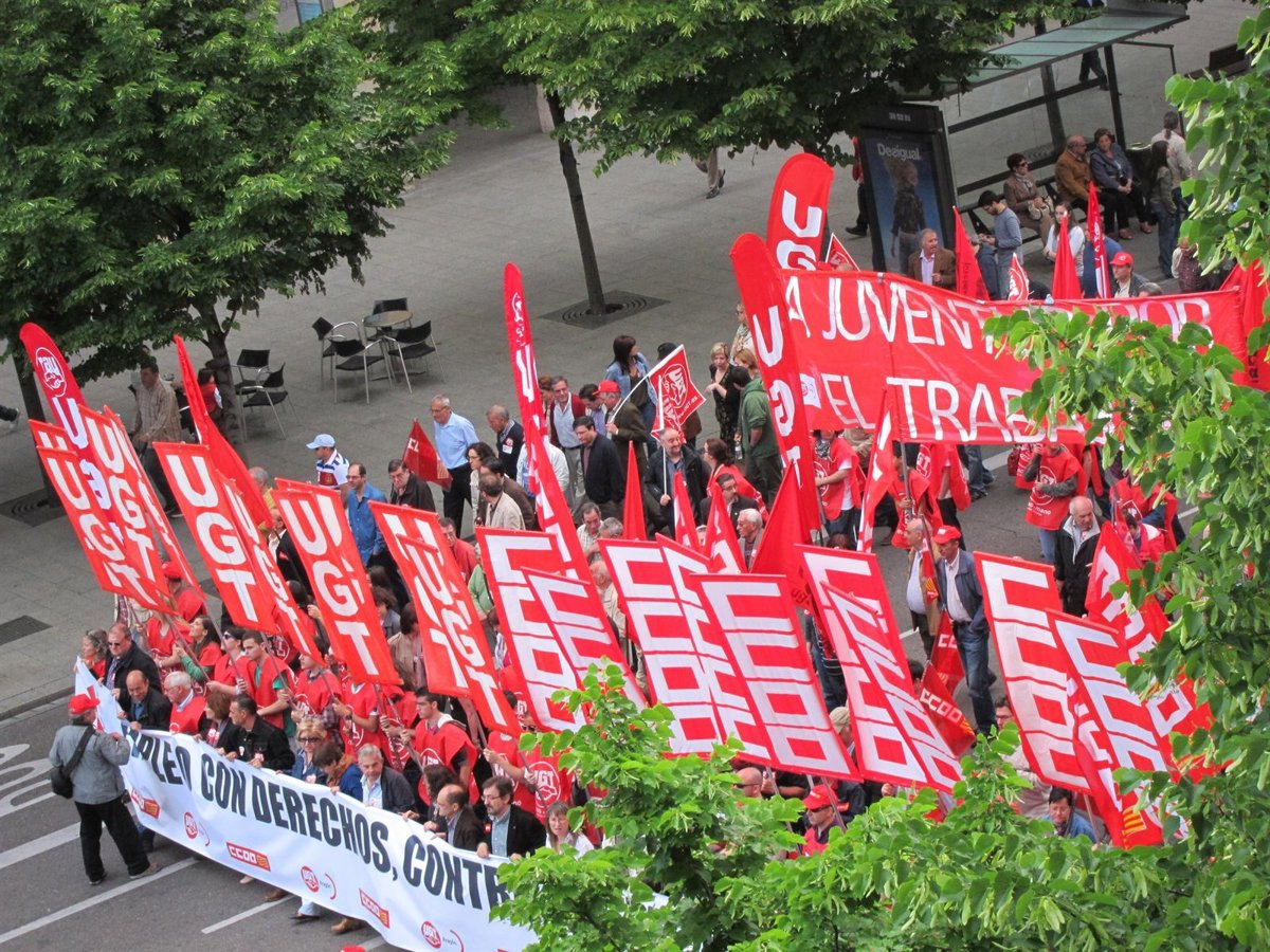 Los principales sindicatos se han movilizado este domingo, 1 de mayo, en Zaragoza para exigir a los Gobiernos de España y Aragón la aplicación de políticas que generen empleo para que se pueda llevar a cabo un posterior mejor reparto de la riqueza.