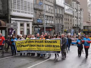 Miles de afectados por las preferentes de plataformas y obligaciones subordinadas de toda Galicia se manifiestan en Santiago de Compostela para reclamar que les devuelvan "el cien por cien" de sus ahorros y demandar una solución al Gobierno central y gallego.