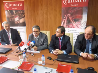Teruel ha hecho estas declaraciones en una comparecencia de prensa, acompañado de los presidentes de las cámaras de Comercio de Badajoz y Cáceres, Fernando Herrera y José Jarones y el director general de la cámara pacense, Antonio Masa, previa a la celebración del pleno de la Cámara de Comercio de Badajoz, al que ha sido invitado para analizar la difícil situación en la que se encuentran las cámaras y perfilar posibles vías de acción para el futuro.