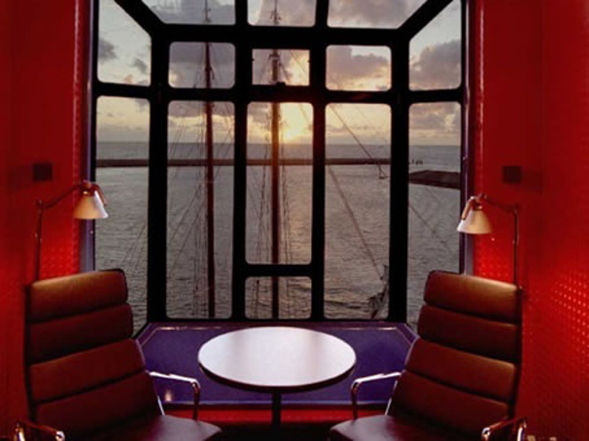 Una pequeña escalera conduce a la cabina donde los huéspedes del hotel pueden ajustar la grúa para moverse 360 grados en cualquier dirección con el fin de conseguir vistas panorámicas de el mar de Wadden, el Faro, la ciudad y el puerto.
