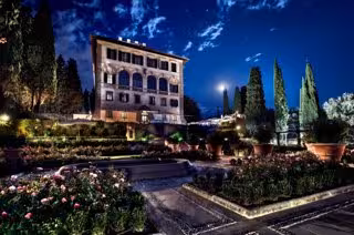 El hotel construido sobre una antigua villa italiana del siglo XV está ubicado sobre las colinas de Fiesole, a pocos minutos de Florencia, y con unos jardines que ocupan una superficie de más de 50.000 metros cuadrados.