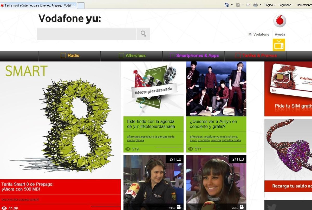 Vodafone ha anunciado que aumentará los megas incluidos en sus tarifas prepago, especialmente pensadas para el público joven, 'Yu' aunque empezará a cobrar, a partir de septiembre, una vez que el cliente exceda los límites establecidos (hasta ahora sólo se reduce la velocidad).