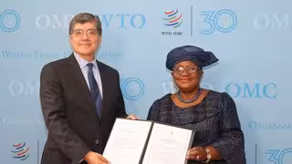La directora general de la OMC, Okonjo-Iweala, ha señalado que es "un honor" presentar el instrumento de aceptación del Acuerdo sobre Subvenciones a la Pesca, el primer instrumento de la OMC que promueve regulaciones comerciales tomando en consideración la sostenibilidad de los océanos.