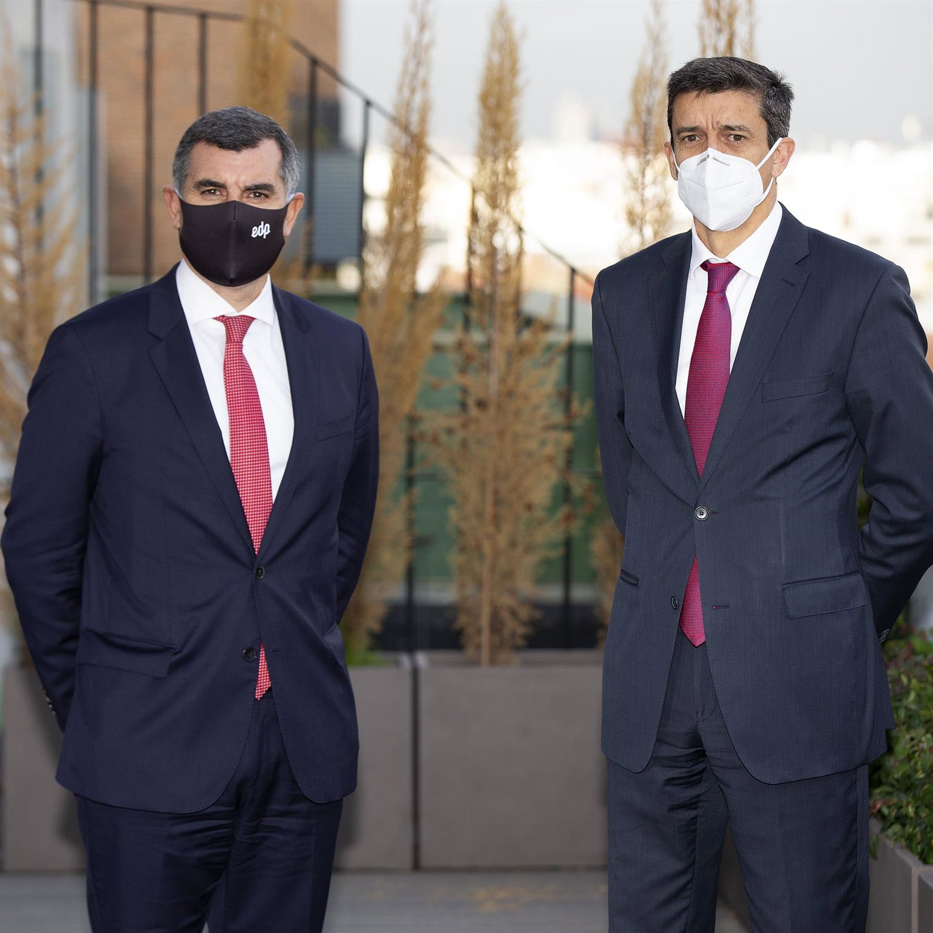 El consejero delegado de EDP España, Rui Teixeira y el responsable de Macquarie Infrastructure and Real Assets en la península ibérica y miembro del Consejo de Administración de Viesgo, Juan Caño. - DANIEL MORA