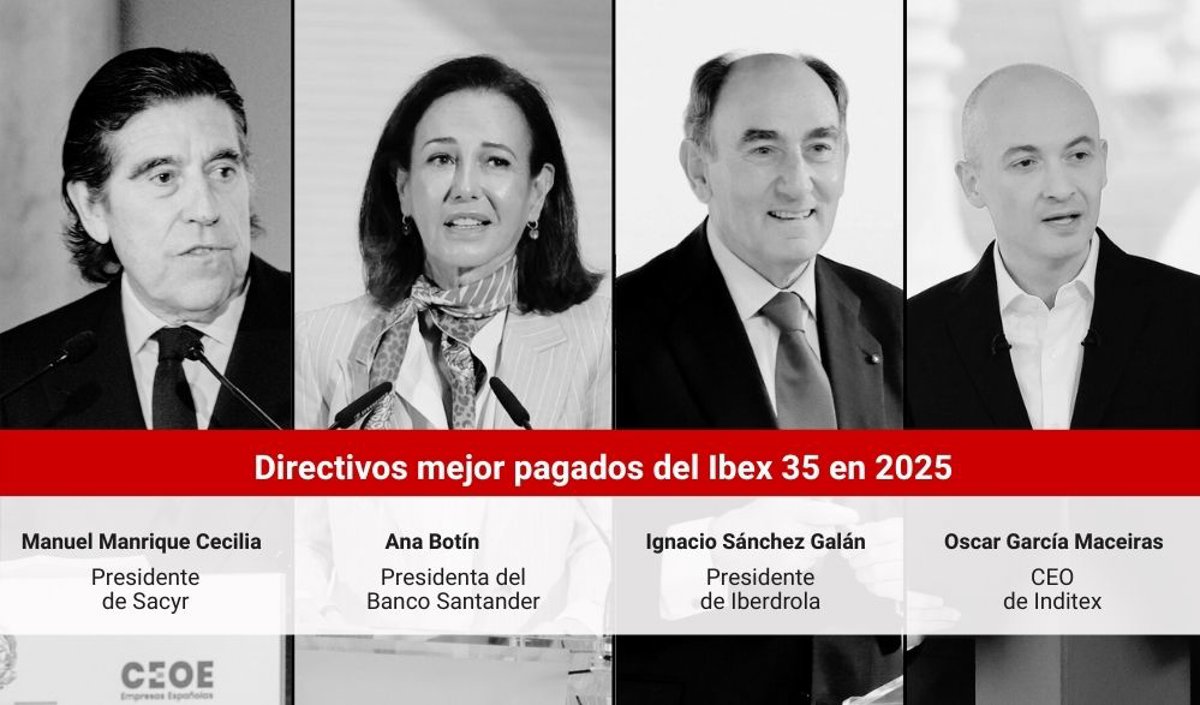 Como es habitual, los máximos ejecutivos de Iberdrola, Santander e Inditex ocupan los primeros puestos del ranking, respaldados por su elevada capitalización bursátil y el buen comportamiento de sus acciones. Sin embargo, este año destaca una excepción, el presidente ejecutivo de Sacyr, Manuel Manrique Cecilia, quien se sitúa como el directivo mejor pagado entre las cotizadas, con una retribución total de 32,6 millones de euros en 2025, lo que supone un incremento del 384% respecto al ejercicio anterior.