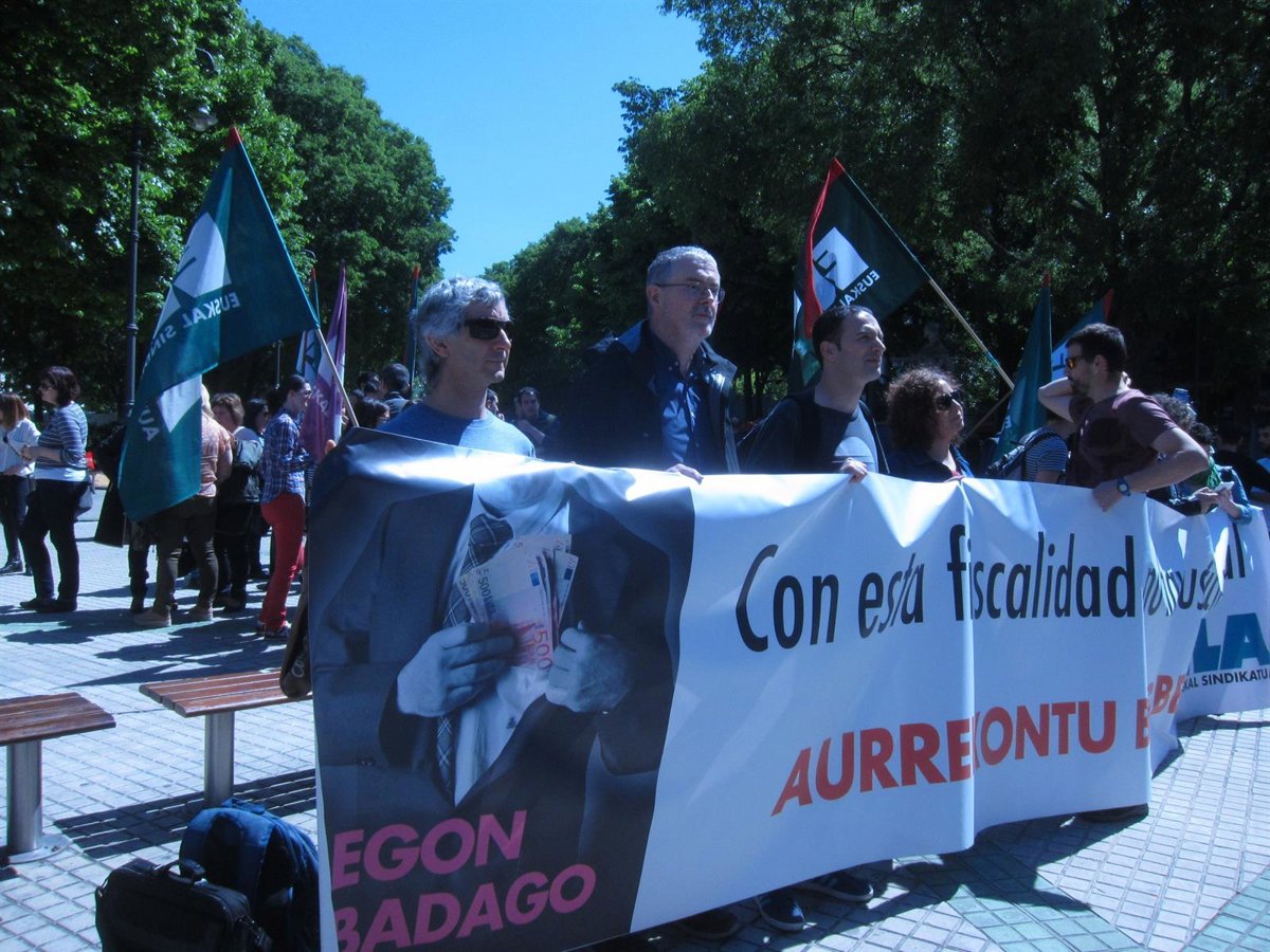 El secretario general de ELA ha participado este viernes en el Palacio del Condestable de Pamplona en un acto con delegados en el que han abordado sus propuestas de fiscalidad, que ha culminado con una manifestación hasta la sede del Parlamento.