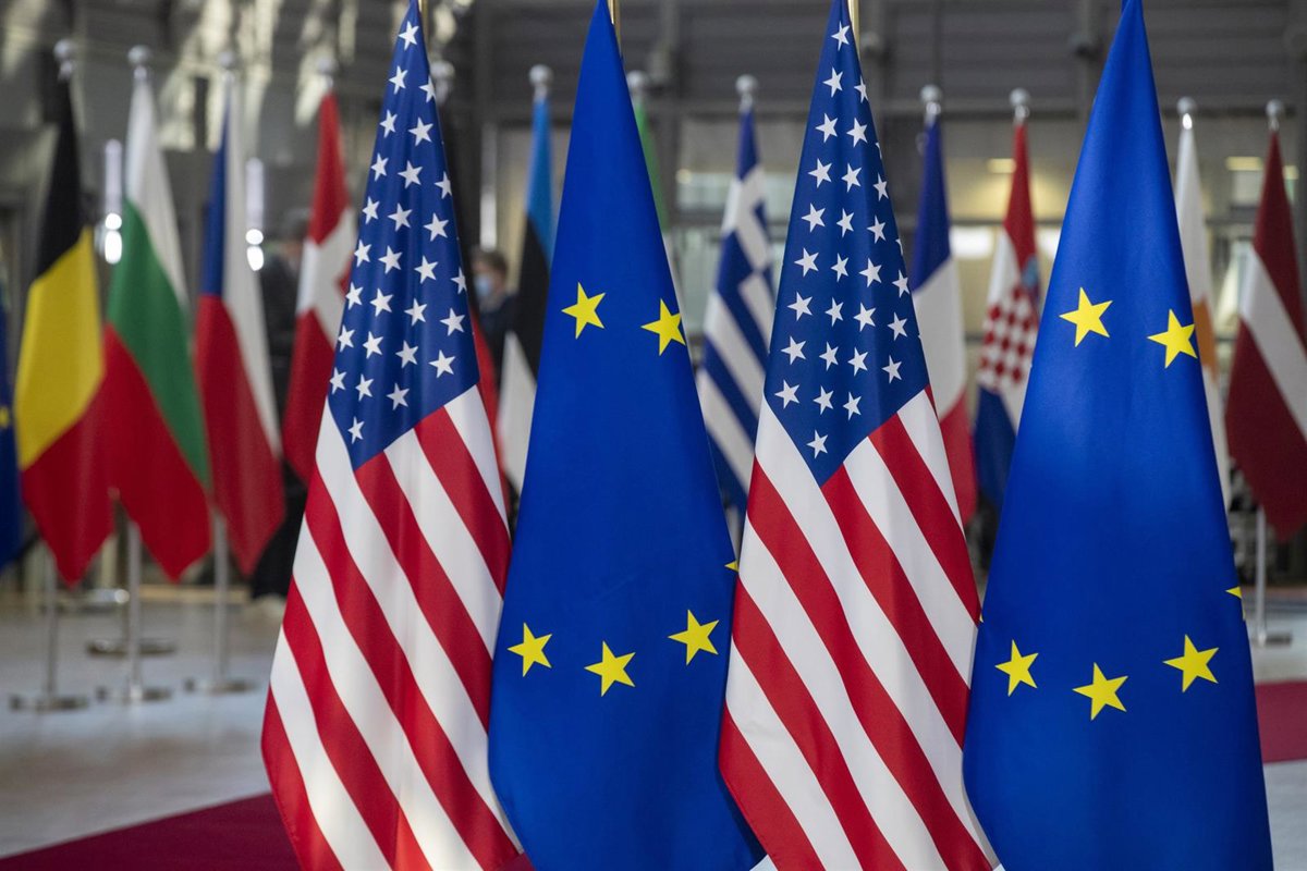 Archivo - Banderas de Estados Unidos y la UE - NICOLAS MAETERLINCK / BELGA PRESS / CONTACTOPHOTO