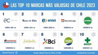De su lado, Entel se sitúa como la tercera marca más valiosa en 2023, tras elevar su valor de marca en un 22%, hasta los 1.000 millones de dólares (932 millones de euros). La compañía ha recortado sus ganancias en el primer trimestre debido a la contracción del consumo aunque sigue siendo una marca que se caracteriza por la solidez ante el crecimiento de su cartera de clientes.