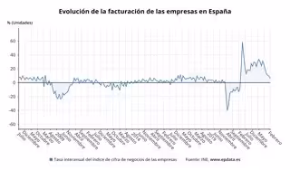 Corregida de efectos estacionales y de calendario, la facturación de las empresas se incrementó un 6,8% interanual el pasado mes de febrero, tasa dos puntos inferior a la de enero.