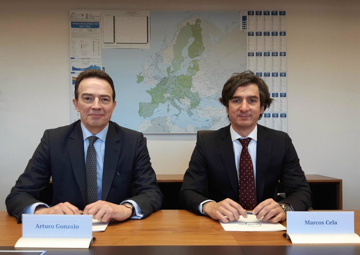 El consejero delegado de Enagás, Arturo Gonzalo (a la izquierda), y el consejero delegado de Molins (a la derecha), Marcos Cela. - ENAGÁS