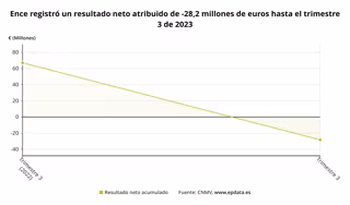 Ence registró unas pérdidas atribuidas de 28,2 millones de euros en los nueve primeros meses del año, frente a las ganancias de 67 millones de euros en el mismo periodo del ejercicio anterior, lastrado por el suelo alcanzado en los precios de la celulosa; un contexto que se vio mitigado por la reducción de costes y el aumento de la producción alcanzados por el grupo en este periodo, informó la compañía.